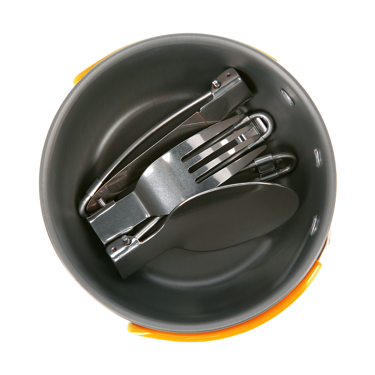 Hrnec a rendlík jsou vyrobeny z eloxovaného hliníku. Eloxace zamezuje oxidování povrchu a díky tomu se nemusíte obávat použití nádobí například v dešti. Sklopné rukojeti jsou vyrobeny z nerezové oceli a část pro uchopení rukou je potažena gumovou bužírkou, která pomáhá předcházet popálení při manipulaci s nádobím nad hořákem. Po sklopení rukojetí zabírá sada velice málo prostoru a bez problému se vejde i to menšího batohu. Hrnce je opatřen stupnicí pro snadné dávkování a jeho užitný objem je 0,8 litru, rendlík má objem 0,35 litru.