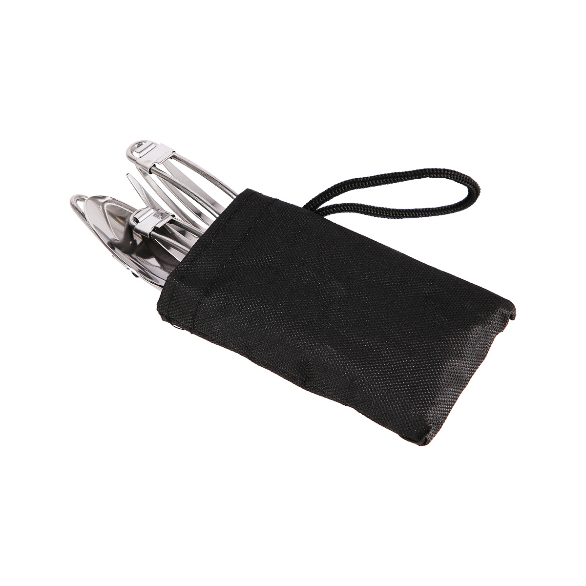 Příborová sada se skládá z lžíce, vidličky a nože. Každý kus je vybaven skládací rukojetí, která je osazena posuvnou pojistkou pro zajištění příboru proti složení, toto řešení zaručuje jistotu a bezpečnost při jídle, kdy máte pocit, jako byste používali plnohodnotný příbor. Příbor lze po složení uložit do praktického sáčku na suchý zip, které je součástí balení.